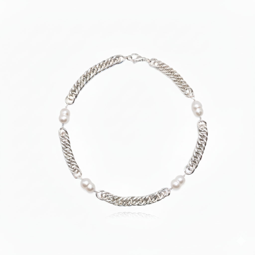Elevate your everyday luster with the Love Signal Necklace. This piece strikes the perfect balance between rugged edge and classic sophistication. Featuring a high-polish Sterling Silver Cuban chain seamlessly integrated with hand-selected Freshwater Pearls, itโs a modern take on timeless jewelry. At 18 inches in length, it sits perfectly at the collarbone, making it an ideal standout piece or a base for layering. Materials: Genuine Freshwater Pearls, .925 Sterling Silver Length: 18 inches Style: Unisex / Contemporary Classic