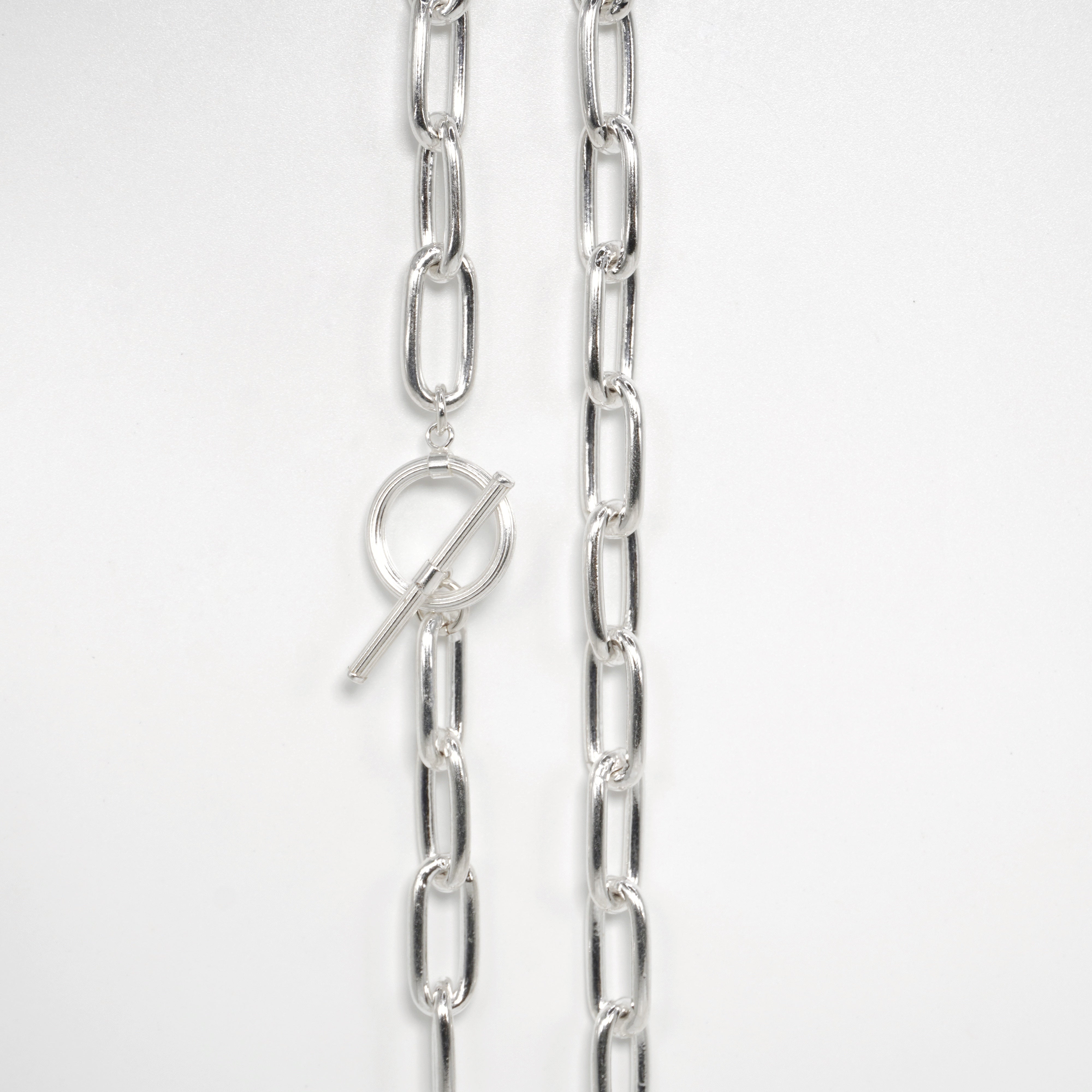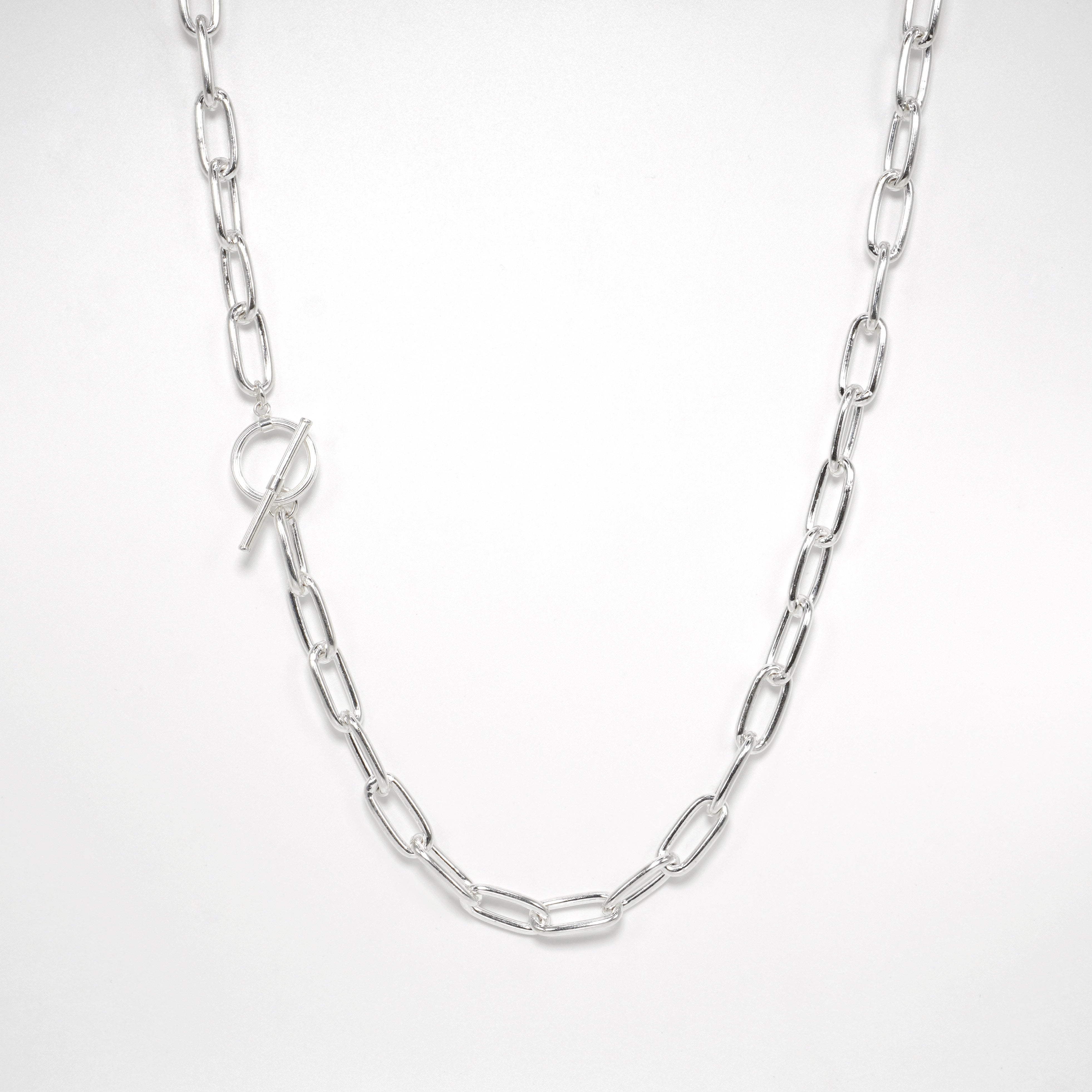 • Design: Bold link chain with front toggle clasp